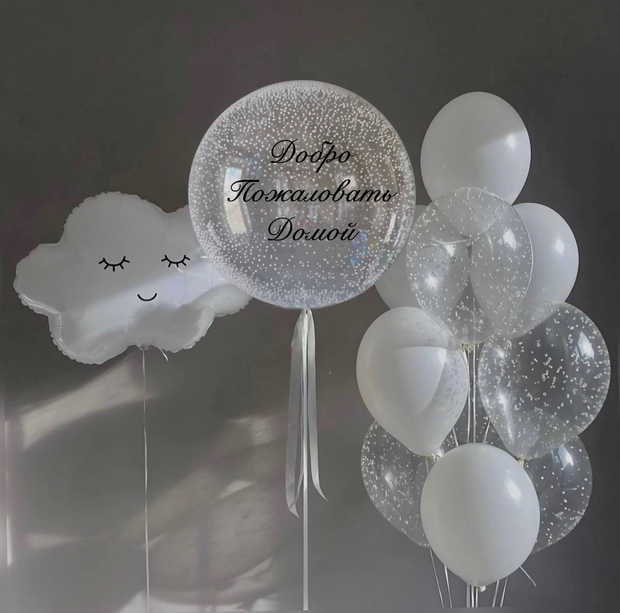 Сет состоит из 9 шаров латексных, фигуры облако и баблза.Состав :