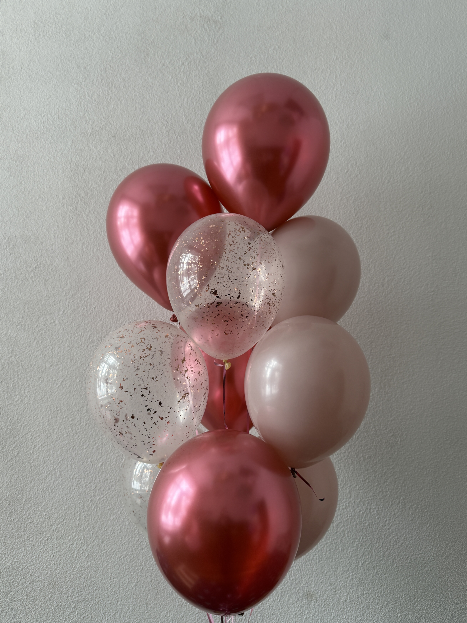 - латексный шар- 10 шт(4- розовый хром,3- прозрачный шар с блесткой,3- шара пыльная роза).