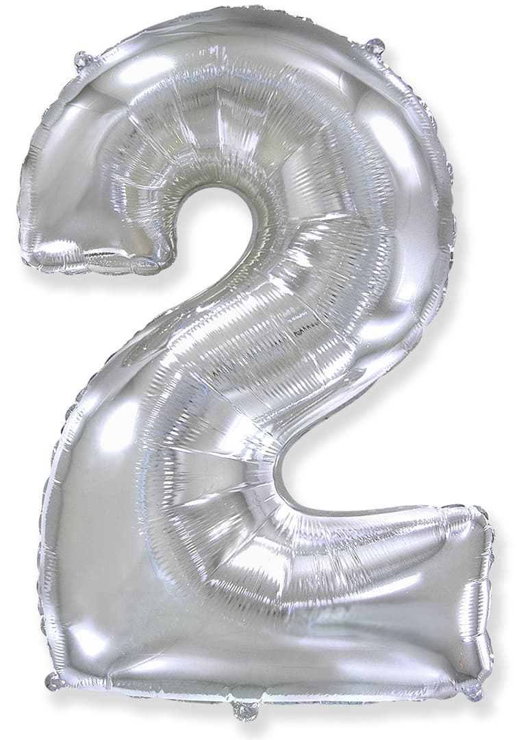 Шар наполненный гелием (40''/102 см) Цифра,2, Серебро.Podarok.by - Дисконтная программа! Мы ценим клиентов! Доставка 24 часа в день, 7 дней в неделю!