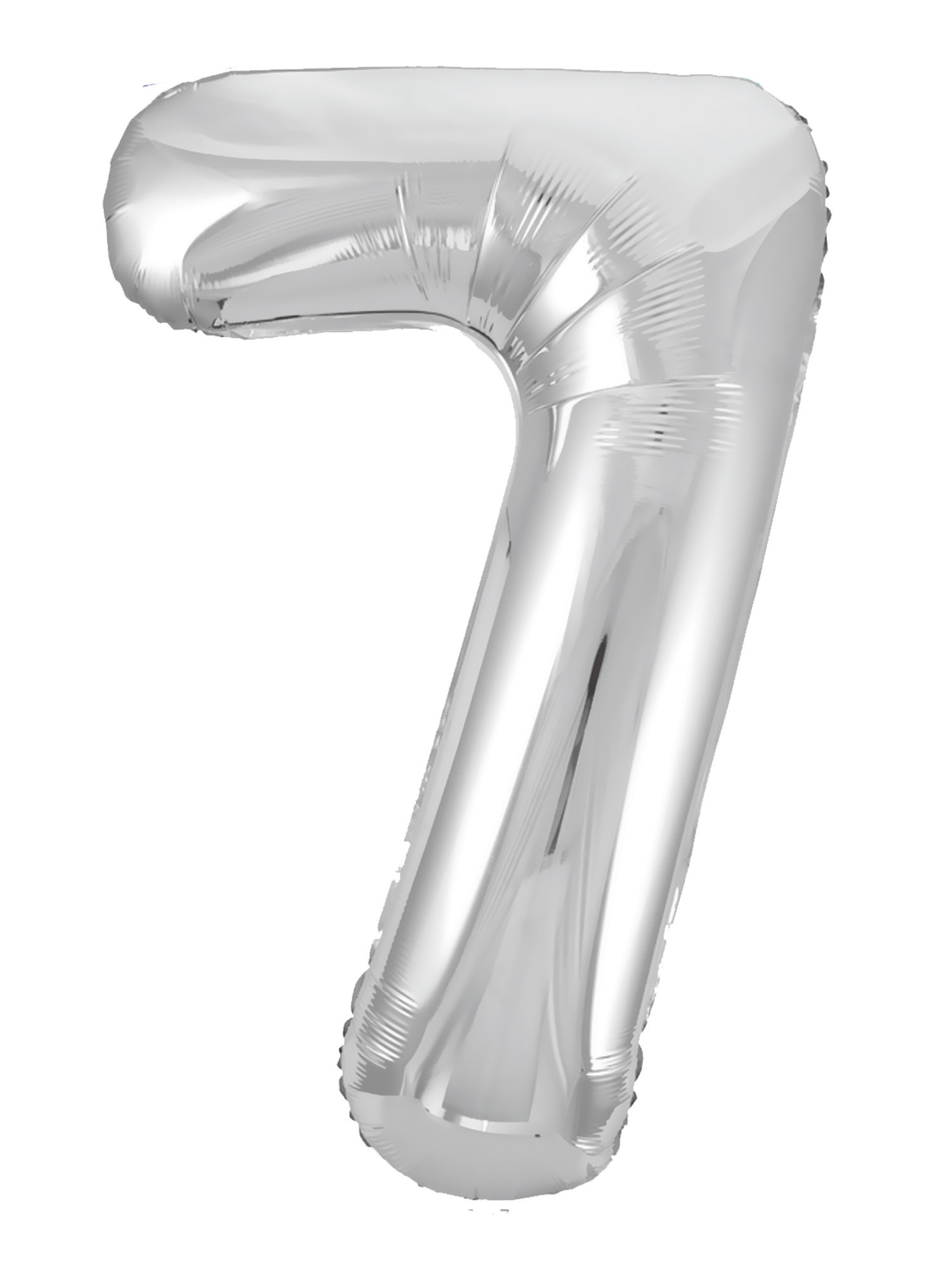 Шар наполненный гелием (40'' / 102 см) Цифра 7, Серебро.