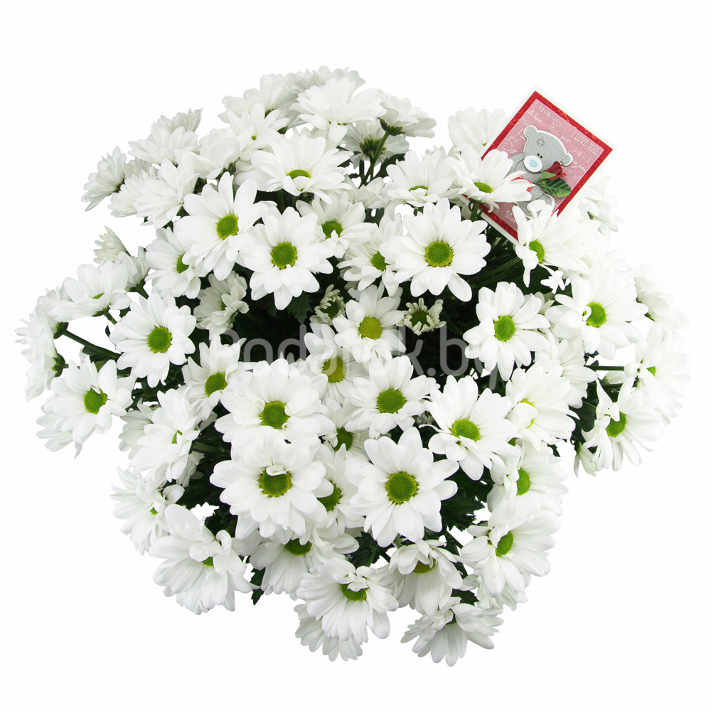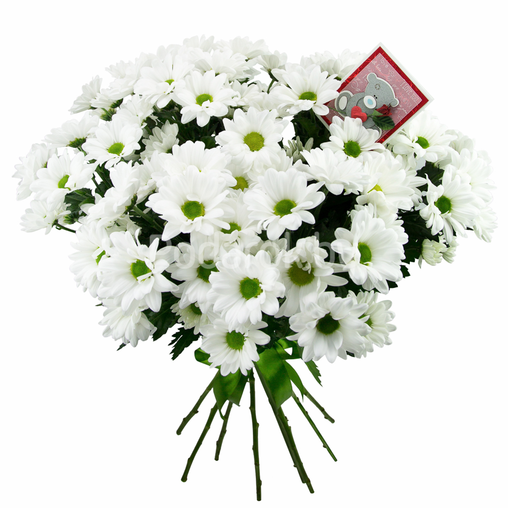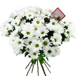 Вашему вниманию представляем букет хризантем сорта "Просекко" перевязанных лентой.Вы так же можете приобрести открытку ручной работы, куда мы можем вписать любое Ваше пожелание.