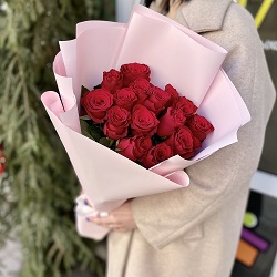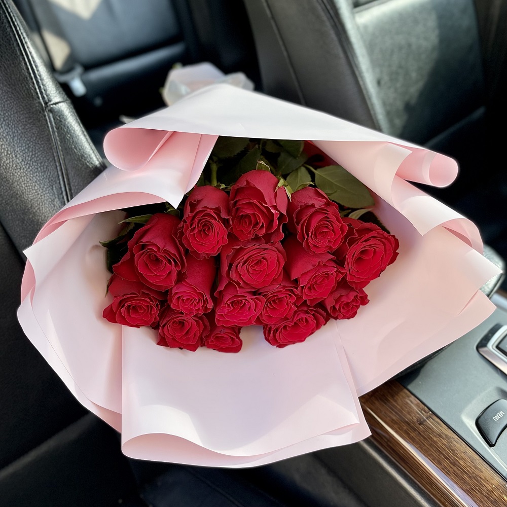 15 красных роз в упаковке